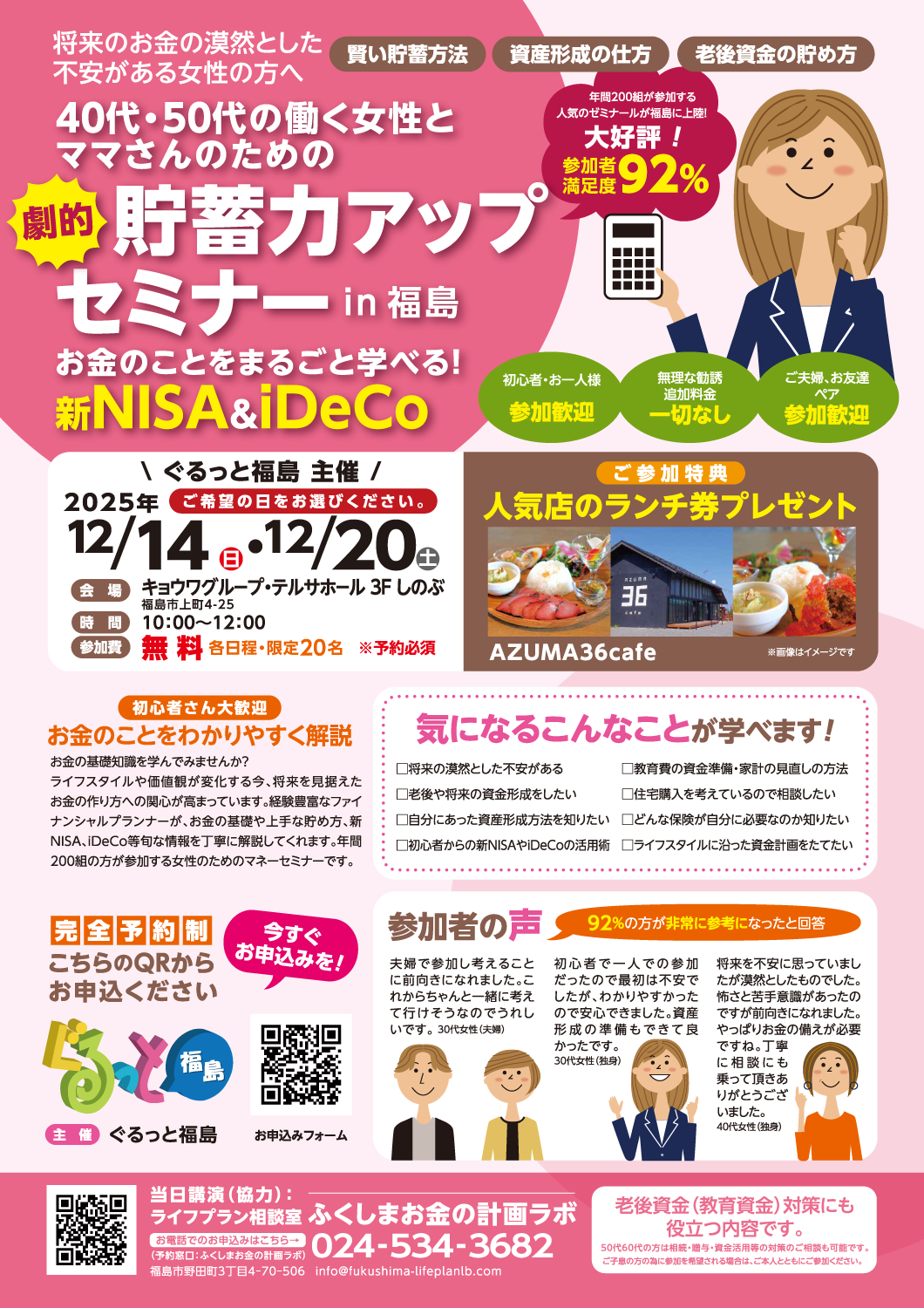 セミナー形式で情報発信も定期的に行い、福島の皆様がお金に対する知識を深めていく活動も行っていきます。